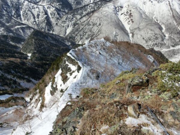 m岩峰の下りはロープを使い安全に