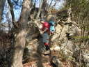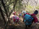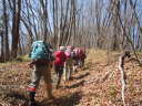 | 【山行報告】 Sさんの呼び掛けで集まった計9人で権現山に行きました。 行きの電車内で登山コースの変更を決定、リーダーが会にコース変更を連絡。 山頂まで、樹林帯のしっかりした登山道を、ひたすら登る。 |