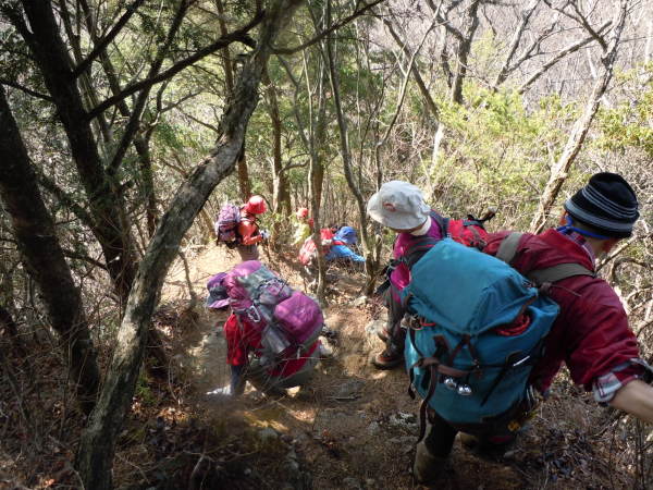 鋸尾根と言われるだけに岩の連続。ゆっくり気を付けて下りましょう。