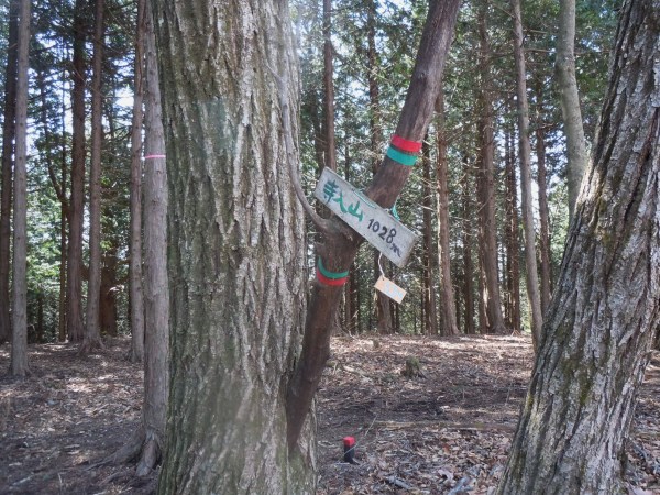 寺入山(1,028m)という標識が木に・・・。