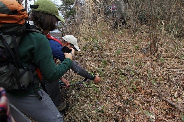 カタクリの群落を撮る仲間たち