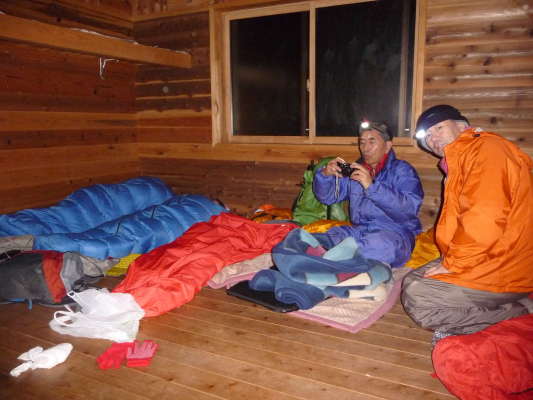 板張りのきれいで快適な小屋。ふかふかの毛布が2枚ありました