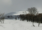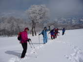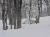 | 【コメント】 <12日(金)> 天気が心配される中、当日はまずまずの天候に恵まれ出発する。 どんな雪原が待っているのだろうかと期待が膨らむ。 只見駅から叶津集落まではすいすいと行ったのだが、叶津集落の最終地点がなかなか見つけられず、地元の保育園の子供たちとお散歩していた保母さんに尋ね、無事最終地点に着く。ここで、車を置く。入叶津登山口までデブレの雪の巨大な塊を左手に見つつ、少し気持ち悪い場所を歩く。登山口の気温が異常に高い?山神ノ杉までは気持ち良い道。やがて素晴らしい姿の山神ノ杉が現れると、ここが今夜の幕営地となるところ。到着後、偵察に行く。この偵察が楽しい。 ビーコンの使い方の練習をし、食事とした。明日が早いので、宴会もそこそこに就寝。 <13日(土)> 起床3:30。テント場を5:20分に出発。ヘッデンをつけての雪の少し落ちる中を平石山に向かう。軽いラッセルを交代で行う。やがて平石山らしきものが現れた。このころにはあたりは明るくなり、ブナに着く雪や氷の花がきれいに見える。振り返ると、眺めがまた素晴らしい。目指す浅草岳は姿を現さず、苦労した。全くルートが見えず、それだけにルートフアイテイングも楽しい。 ブナの木々が美しい。また太く大きく素晴らしい!やっとのことで浅草岳の頂上に到着。周囲はガスって何も見えず。写真を撮り、そそくさと降りる。降り切った所で後ろを振り返ると、なんと!浅草岳のお姿が!きれいで素晴らしい姿でした。それと同時に尾根の両側のガスも晴れ、素晴らしい景観を現す。 素晴らしい2日間でした。 |