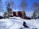 昼には白馬大池に到着した。小屋はまだ雪に埋もれ煙突だけが突き出た状況で、屋根の