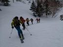 天狗の庭に向けトラバース気味に滑り、さらに温泉へ下る尾根に難なく到着する。