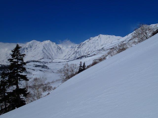 白馬三山と大雪渓 前日、雪崩による遭難がありました