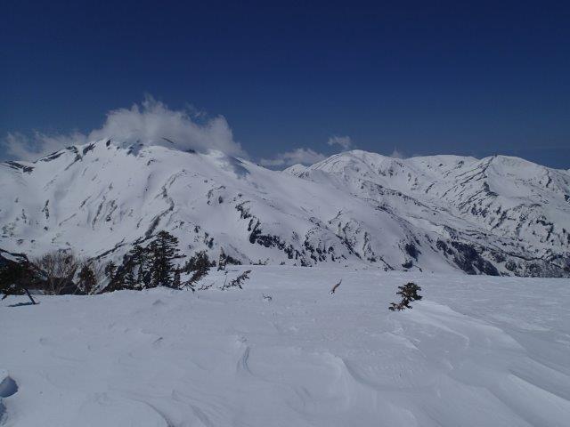 左から雪倉岳、朝日岳、五輪山