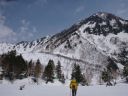 | 「昨日は猛吹雪で内蔵助平で動けなかった。どこにも行けそうに無いので下山を決心して、今朝、3:00に出発してここまで帰ってきた。5時間以上掛かった」と経過を話す。「我々は登りだから、彼よりもっと時間が掛かるに違いない」と不安になったが無理ならば適切な場所から引き返せばよい。 |