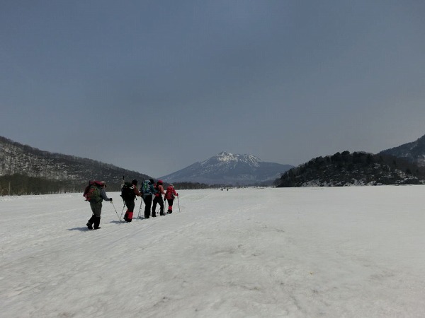 正面に燧ケ岳を見ながら牛首に向かって尾瀬ヶ原を進みます