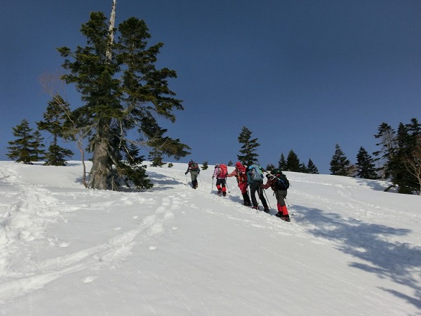 与作岳への登り 朝はまだ雪が締まっていて歩きやすい