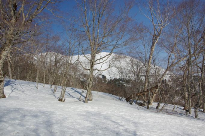ブナ林の向こうに、至仏が!