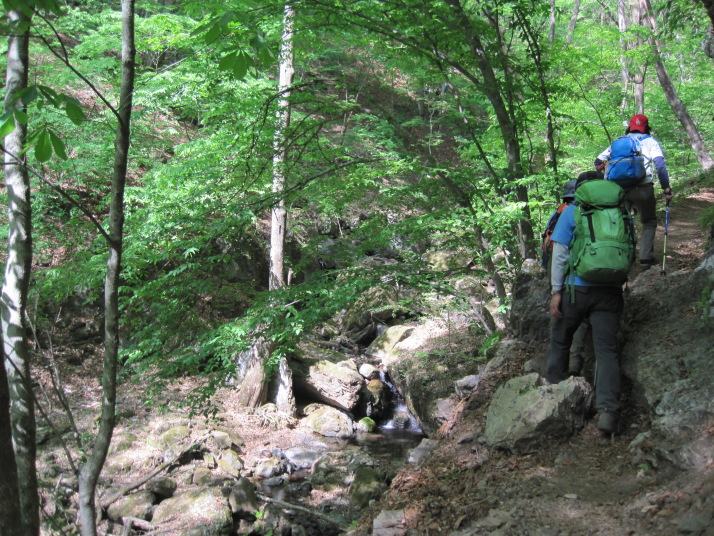 気持ちの良い沢ぞいを歩きます。癒されます 。