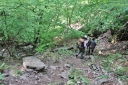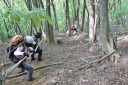 【山行期日】 2013年5月12日(日) 【メンバー】 L;Y.S、T.K、S.O、K.W 【コースタイム】 北朝霞6:28⇒新秋津6:39/秋津6:55⇒飯能7:24/7:40(バス)⇒名郷8:35〜8:45 天狗岩10:00→前武川岳11:05〜20→武川岳11:35〜12:10(昼食)→鳶岩山→焼山13:10〜25→分岐13:40 二子山・雄岳14:15〜25→雌岳14:35→芦ヶ久保15:35(道の駅立ち寄り)〜16:02⇒北朝霞17:37 【コメント】 週末は雨模様との予報で11日(土)に予定していた山行を中止にしたが、天気予報が晴マークにな ると落ち着かない面々は12日(日)に急遽計画書を提出する。 飯能から名郷へのバスはかなり混雑するのではないかと心配したがGW明けのためか、さほどの行列 もなく少々気がぬける。 天狗岩を経由する武川岳から二子山への縦走路はなかなかおもしろい。 岩登りを楽しみながら天狗岩を通過し、ペース配分良く武川岳山頂へ。 いくつかのパーティが休んでいるのどかな風景に、我々も昼食タイム。 ここから先は急な下りと小さなアップダウンの繰り返しで、見晴らしの良い焼山で武甲山の削られた 姿や両神山を眺め一息入れる。二子山が目前に見えるがやや疲れた足には長く感じる登りである。 二子山雌岳で今日の縦走は終わりとなり、沢コースをロープに掴まりながら無事下山した。 奥武蔵でも骨のあるコースであった。 (S.O;記) |