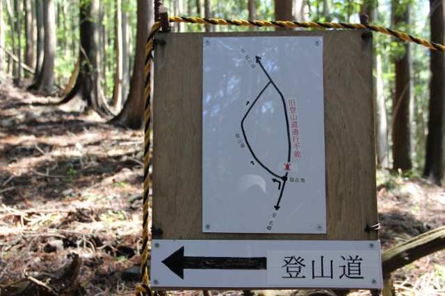 旧登山道通行不能の表示板