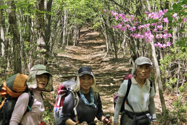 ミツバツツジと美女3人