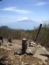 【コースタイム】新座駅6:10⇒談合坂7:18〜7:30⇒河口湖IC7:55⇒大石峠入口8:15 大石峠登山口8:32→湧水9:24〜34→大石峠10:09〜10:20→(途中昼食)→ 節刀ヶ岳山頂12:04〜12:17→金山12:31→鬼ヶ岳12:57→雪頭ヶ岳13:07〜 13:12→鬼ヶ岳13:30→鍵掛峠14:23→西湖いやしの里根場BS 15:58 ←大石峠から撮影 |