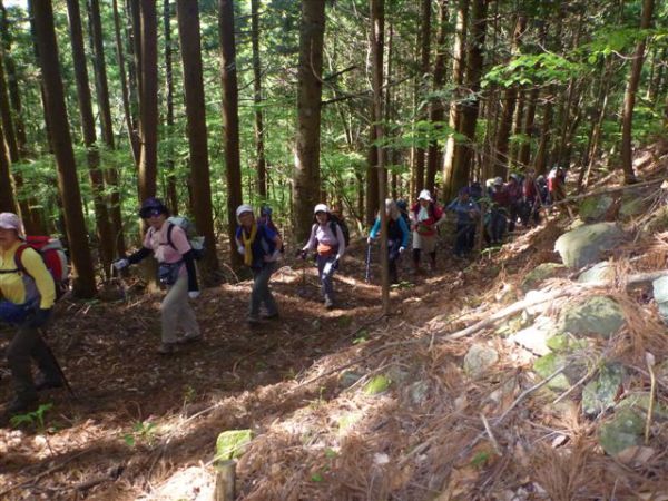 人工林の中を緩やかに登る