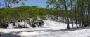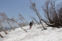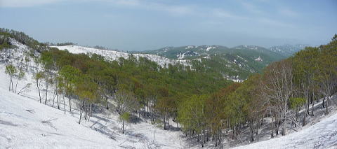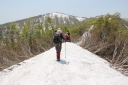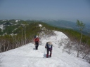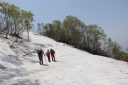 【メンバー】 L.M.U/K.W/S.T 【コースタイム】 5月21日(火) 斑尾高原9:00―斑尾山10:30―12:50Hタングラム1:15―万坂峠13:35―沼の原湿原 14:00 ―斑尾高原15:30 5月22日(水) 関田峠下チェーン脱着所10:00―関田峠11:15―13:15鍋倉山13:30―南東尾根―西の沢 ―チェーン脱着所14:50 記録;M.U 【コメント】 20日 夜行バスで長野駅へ。 21日 飯山線で飯山駅へ行き、バス時間まで駅でゆっくり朝食。 斑尾高原のホテル裏からゲレンデを登る、眼下には斑尾高原が一望できた。 樹林帯ではタムシバの白い花が目立ちうつくしい。 斑尾山山頂からはホテルタングラムのゲレンデを下りる。 登り下りともフキノトウと蕨の山菜取りでした。 沼の原湿原ではショウジョウバカマ、アズマイチゲ、さらに水芭蕉とキュウキンカ、 ミツガシワも咲いてました。 飯山駅に戻ると、宿泊先のYHのオーナーが出迎えに来ていました。 22日 YHのオーナー案内で鍋倉山へ。 旬のアスパラを、農家まで行って買ってから鍋倉山へ。 関田峠下チェーン脱着所から舗装道路を関田峠まで歩き、峠からは雪道に。 白さがまぶしいきれいな雪の中、周りは芽吹きのブナ林になる。 天気も良く妙高方面、苗場山方面も見え、すがすがしい空気の中を歩き、早めの昼食を取って、 鍋倉山山頂へ。 下山ルートは、この時期しか入れないブナ林の一番きれいな南東尾根から西の沢を案内して もらう。 チェーン脱着所先の駐車場めがけて急坂を、踵で雪を踏み固めながら、慎重に下りた。 S.T;記 |