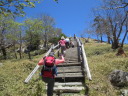 | コメント Kさんと二人で、関西にある百名山三座に登ってきた。奈良にお住まいの会友Tさんからどのようなコースで回ればよいか、どこに泊ればよいかなどをいろいろと教えてもらい、レンタカーを有効に使いながら登ることができた。3日間とも快晴で眺めがよかった。 夜行バスで23日の夜に出発し、24日の朝、奈良の大和八木駅に着き、7時になるのを待って朝食を取り、レンタカーを借りに行った。借りたレンタカーで大台ケ原の登山口駐車場まで行った。そこから歩いたが、登山者も多く、歩きやすい道だった。まわりの景色が、関東と違っていた。頂上の日出ヶ岳には40分ぐらいで着いた。頂上からの景色は、大台ケ原を象徴していて、関東の山とは違ったわび、さびの風情があった。枯れた枝が何かを語っているような不思議な感じがした。石牛ヶ原からシオカラ谷吊り橋のほうを回った。14時45分には駐車場にもどった。そこから、今日の宿泊場所の天川ユースホステルまで車を走らせた。途中から細い道になり、がけ崩れがあっても不思議ではないような危険な道だった。ようやくユースホステルに着くことができた。 25日は、対向車が来ないように朝早く出ることにした。5時過ぎには出発した。車は順調に進み、行者還トンネルには6時半に着いた。駐車場も運よく空いていた。大峰山を目指して出発した。昨日の大台ケ原とは違って、最初からずっと登りが続いた。少しスピードをあげながら、登って行った。最後の急な階段を登ったら、弥山に着いた。広い場所で、大きな弥山小屋があったが、今は使われていない感じだった。ゆっくり休憩をして、天河奥宮まで行った。ここも枯れた風情のある木がたくさんあった。弥山まで戻り、今日の目的地である八経ヶ岳に向かった。ずっと下ってから、登りになった。八経ヶ岳が遠くに見えたので「30分で行けるのかな」と心配したが、9時40分には着くことができた。頂上には、たくさんの人がいて、若者が多かった。写真を撮り、ながめを堪能してから、弥山にもどった。そこから行者還トンネルまで、同じ道を戻った。途中石がごろごろしていて、歩きにくい道の連続だった。行者還トンネルには12時40分に着くことができた。やはり朝早く出発したのが正解だった。車を走らせ、大和八木駅の近くのレンタカー屋さんに着き、車を返した。タクシーで大和八木駅まで行き、電車で京都に行った。駅から歩いて5分のところにある「ピースホステル京都」に泊った。 26日は、当初の予定(1合目から歩く)を変更して、レンタカーを米原で借りて、伊吹山登山口まで車で行くことにした。有料道路を快適に進み、駐車場には11時に着いた。そこから頂上を目指し、ゆっくりと散策しながら歩いた。二輪草が一面どこまでも咲いていて、きれいだった。大回りをして駐車場に戻り、車で米原まで戻った。レンタカーを返し、米原から名古屋に向かった。23時30分の夜行バスに乗って帰ってきた。27日の5時半に新宿駅に着いた。今回はレンタカーを有効に使い、三座に登ることができた。(Y/S記) |