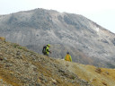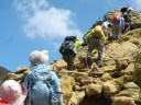 | 【コースタイム】 新座駅5:50⇒朝霞台6:00⇒東北道那須IC8:30⇒那須岳駐車場 9:00→登山口9:25 →峰の茶屋避難小屋10:05→朝日岳の肩10:50→朝日岳頂上11:00→清水平11:40(昼食)〜12:10 →三本槍岳 12:45→朝日岳の肩14:00→峰の茶屋跡14:35→登山口駐車場15:15 朝霞台19:55⇒志木駅20:00⇒新座駅20:10 記:S/H |