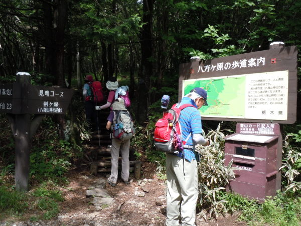 登山届のポスト、案内板、道標がしっかりとあります