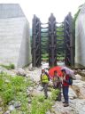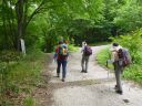 | 最後テープが見えなくなりましたがさすがリーダーです。地図を見ながら方向を確かめ、登り始めた堰堤にでて藪山山行は終了ですがまだ2時間の林道歩きがまっています。よほど疲れた顔だったのでしょう。登山口で帰り支度をしていた親切な釣り人の車に乗せていただき予定の時間に駅につきました。 |
