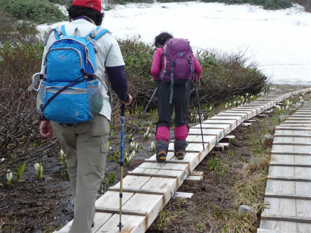 芽を出した水芭蕉を愛でながら歩く