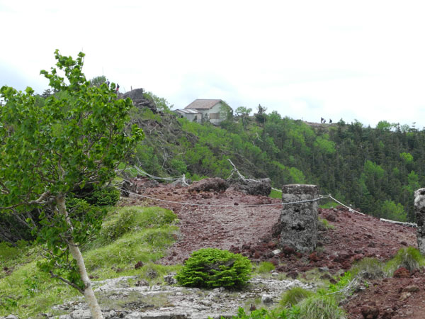 九合目にくると奥宮の建物が見えてきます。