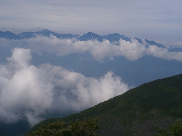 雲の向こうに南アルプスの山々