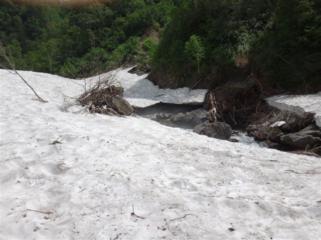 11程なく雪渓が出てくる