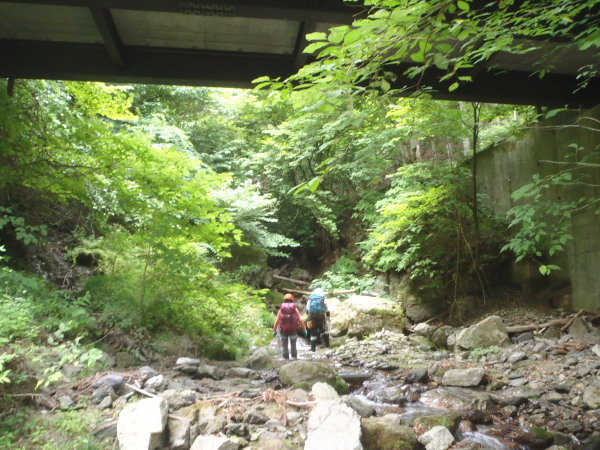堰堤を一つ見送り入渓し橋をくぐる