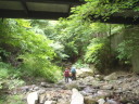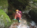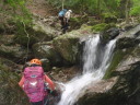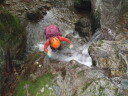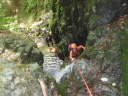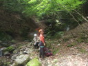 | Yリーダーの指導のもと大持沢へ。初心者向けの沢だ、とゆう事で手をあげた。入渓点まで林道を期待と不安の中歩く。谷と沢と苔と・・・緊張しながら入渓。沢の渡渉経験はあったが、こんなに水流のある沢歩きは、初めてである。全体的に苔むしていて、幻想的な渓相を歩くのは、気持ちが良く心と身体が喜んだ。ぬるぬるの岩・小さな滝・シャワーを浴びながらの大きな滝・そして釜が結構あった。ネットで下調べは、したつもりであったが、思ったより大変だった。最後の胎内くぐり岩は、ロープを出してもらいシャワークライムをしながら潜る様な形でやっと登る事が出来た。沢の終盤に出てくると沢沿いに右側を尾根に向かって歩いた。想像以上の急坂である。それもそのはず、谷から尾根へ一気に登るのである。やっとの事で主尾根に出て、一般の山道に出た時は、都会に出た感じがした。大持山到着(バンザイ!!)記念写真を撮って妻坂峠を経て駐車場へ。帰りは、武甲の湯で体を休め新座に向かった。車の中での反省会も下記の様な内容のこいものであった。 ①初心者向けの沢なので小さな滝がある位かと思っていたが、大きな滝・深い釜・シャワークライムと、大変だった旨を話したところ、これ位は滝とは言わない。段差だと指導を受けた。Yリーダーの様にピョンピョンピョンと沢を歩いてみたい。 ②新座山の会について話した。Yリーダーから新座山の会として、どの様にしたらいいか、を考え意見が違うこともあるが、引く事も大事だと指導があった。そして、新座山の会に恩返しをしなければいけない。との話であった。楽しく有意義な一日であった。また、沢のぼりをしてみたいと思った。 記:T/Y |