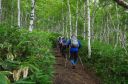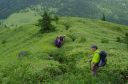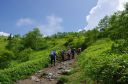 | 【メンバー】 CL/T.K、SL/S.W、S.O、H.Y、S.H、I.H、Y.T (7名) 【コースタイム】 6時新座駅→9時菅平高原P→9時20分登山開始→11時35分根子岳頂上 →13時50分四阿山頂上→16時30分菅平高原 (記録;Y.T) 【コメント】 6時に新座駅を出発、9時菅平高原牧場に着くと高原の爽やかな風が吹き、天気も良く気分が いい。 歩き始めると沿道には高山植物が沢山咲いていて、これは何だ、それはあれだねと賑やかに お花談義に花が咲く。 ひたすら登る事2時間で根子岳頂上。眺望もよく蝶やトンボが乱舞している。 写真を撮って昼食。 四阿山に向かい一旦ゆっくり下る。変化に富んだ道はとても楽しい。 1時間位下りると急登になる。岩場の急登はきつく尾根はまだかと何度も背伸びをして確認。 13時50分四阿山頂上。神社でお参り。 下山開始1時間位で雨が降り始め雷が鳴りだしたので、一行無言でひたすら歩く。 あっという間に登山道は川のようになった。無事牧場に着くと沢山の牛が出迎えてくれた。 色々な高山植物が見られてとても楽しい山行でした。 (Y.T記) 【本日のお花】 ニガナ、ウツボグサ、ギボウシ、ウスユキソウ、オトギリソウ、ホタルブクロ、オミナエシ、 シュロソウ、マルバダケブキ、オニユリ |