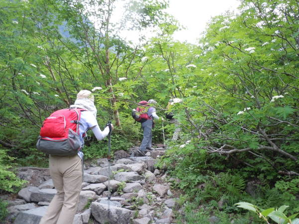 ナナカマドの白い花が咲く登山道