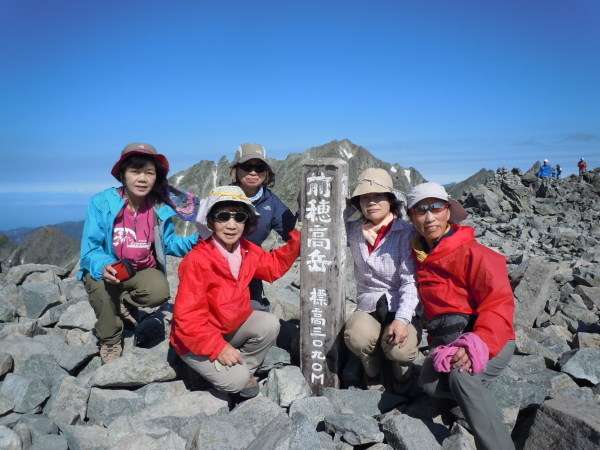 急峻なゴロ岩場を登り、前穂高岳山頂に到着(3090m)