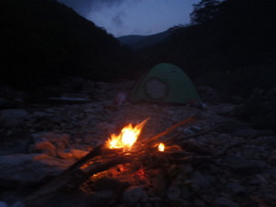 夜になってたき火が映える