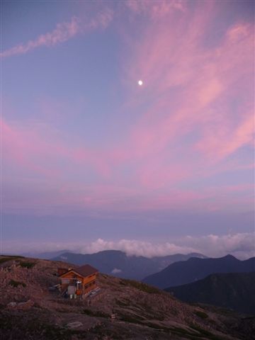 夕暮れの赤石岳避難小屋