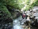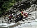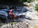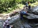 | 【メンバー】 L:S/A S/O C/O M/U E/S S/K Y/I 【コースタイム】 土合・白毛門駐車場9:00―入渓―東黒沢上部までピストン(登り、下りとも練習をしながら歩行)― 白毛門駐車場16:00 【 コメント】 赤木沢の予行演習の東黒沢に便乗させて頂きました。 ノーザイルで滑滝の登り下り、FIXロープにプルージックで登り、立った滝を二人一組のリード&フォローで確保(リード登攀時は補助的に別のロープで確保)、懸垂下降、へツリ、巻き、泳ぎ等、練習内容は盛りだくさん。 最初は景色を見る余裕も無かったが、お湯を沸かした昼食時には、「綺麗だね」、「涼しいね」、「気持ちいいね」と上越国境の沢を満喫しました。 丁寧に指導して頂いたリーダーと、助け合いながら試練を乗り越えたメンバーの皆さんに感謝致します・・・二年後にまた行こうね。 (S/K記) |
