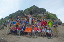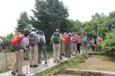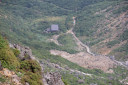 | 夏合宿。高村光太郎の詩集「智恵子抄」で有名な安達太良山に登った。 朝霞台を朝6時出発。東北自動車道にて一路福島を目指した。週末に台風の接近が予想されるため計画を前倒しすることにした。 当初の計画では1日目に和尚山登山組と銚子ケ滝散策組に分かれて行動した後、県民の森「フォレストパークあだたら」にてコテージ&テント泊し、2日目に安達太良山高原スキー場を起点に安達太良山連峰(鉄山・箕輪山・鬼面山)を縦走、旧土湯峠を経て横向温泉まで下山する予定であったが、当日は悪天候が予想されるため初日に安達太良山に登り、鉄山までピストンした後、馬の背分岐から勢至平経由で奥岳登山口へ下山、そこからバスでキャンプ場に帰るルートに変更となった。したがって、当初予定していた和尚山方面へは行かず二本松ICまで延伸し岳温泉から奥岳登山口(スキー場)まで行き、ゴンドラ「あだたらエクスプレス」を利用して一気に薬師岳まで運び上げてもらうこととした。 (ゴンドラ駅着10時20分・乗車時間6分・料金800円) 午前11時登山開始。男性16人、女性21人、総勢37人を4班に編成し先頭をyySL、最後尾をjiCLが締め、中をys、ik、hs、nk、mi、ki、ky 各SL7人が担当した。今日の天気は上々、湿度が高いせいか結構蒸し暑い。薬師岳の展望台には5分で到着。祠と鐘が置いてあり鐘を打って今日の登山の無事を祈る。 「このうえの空がほんとの空です」と書かれた標柱が立っていた。 「東京の空 灰色の空 ほんとの空が見たいという᠁♪♪♪ 」という歌詞で始まる2代目コロンビアローズが唄った智恵子抄のメロデイを口ずさむ。 安達太良山頂までは1時間30分の行程だ。木道で整備された道をシャクナゲの低木を潜りながらしばらく進むと木道が途絶え、岩場・粘土質の道になる。ナナカマドの実が赤く熟していた。秋の気配を感じる。登山道には紫色の鐘型リンドウが色鮮やかに咲き誇っている。蔓リンドウも負けずに淡紫色の筒型の花を咲かせていた。 途中、県民の森口分岐で小休止(12時)、次第に傾斜が増した道を登っていくとガレた道になり視界が開け山頂の岩峰が目前に出現する。安達太良山頂(1,700m)に到着(12時35分)。別名「乳首山」と言われる頂上に向かう。一部壊れかけた鉄の梯子と鎖を伝い頂上に到達。360度のパノラマを満喫する。磐梯山が遠くに霞んで見えた。 日本野鳥の会の創始者であり、野鳥研究家、歌人・詩人でもある中西悟堂はこの頂に登った時のことを次のように詠んでいる。 「いささかの鎖にすがり 岩づたふ 安達太良山の 乳首のあたま」 昼食休憩後、記念撮影して13時出発、鉄山に向かう。安達太良山から牛の背を経て馬の背にかけての縦走路は尾根沿い西側が火山独特の荒涼とした光景が広がっている。 噴火口である沼の平は火山活動の影響で一面白褐色に覆われ、まるで月面に降り立ったような様相が窺える。沼の平に下りる道は平成9年に起きた火山性ガス遭難事故により今では通行禁止となっていた。馬の背の分岐~尾根沿いに鉄山まで往復およそ1時間、キャンプ場への帰着時間を考慮し鉄山山頂到着後早々に下山した。途中、勢至平分岐まではスムーズに下りてきたがそこからが思ったよりも時間を要し、奥岳登山口に到着したのが予定より約1時間オーバーの16時35分であった。キャンプ場まではバスで移動、17時15分県民の森フォレストパークあだたらに到着。ここからはコテージ(富裕層)組とテント(低所得層)組に分かれ各々諸準備に取り掛かった。 夕食はビジターセンターの中にあるレクチャーホールに全員が集合。テーブルを班ごとに分け、各テーブルには食事担当者が腕に選りをかけて作ってくれた名物の新座鍋が用意されていた。Iリーダーが今日の山行の無事を祝して乾杯の音頭を取り総勢37名の大宴会が始まる。午後9時お開き。明日の天候が朝から雨の予報となっているためか、二次会の方も夜遅くまで続きました。 翌朝、4時半起床。夜明け前だが空がだんだんと明るくなってきた。朝食を早々に済ませ一段落しているうちにポツリポツリと雨が落ちてきた。素早くテントを撤収、テントが濡れる前に撤収完了。間一髪セーフ、サテライトハウス内に各自荷物を持って避難した。 雨脚は次第に早くなり本降りとなる。しかし、今日の予定は帰るだけなので皆のんびりとバスの到着を待つこととなった。8時30分バスが到着。 9時キャンプ場出発、高速道路は渋滞もなく順調に福島、栃木を通過、途中、佐野SAで昼食を摂り朝霞台には1時ちょうどに到着、三々五々解散となった。 Iリーダー各サブリーダーの皆様、他参加者の皆様お疲れ様でした。 (記 KU) |