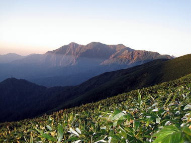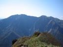 朝日を浴びる谷川岳(七ツ小屋山より) |