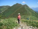 → 土合駅発 18:21 → 水上 → 高崎 → 小川町 → 霞ヶ関駅着21:44 【コメント】 7年前の紅葉の時期に谷川岳の雄姿を眺めたくて白毛門に登った。谷川岳の東壁、一ノ倉沢 幽ノ沢の絶好の展望台である。白毛門からは、谷川岳はもちろん朝日岳がよく見えた。 そして蓬峠から朝日岳・白毛門へのおおらかな稜線を歩いてみたいと思った。 *19日(木) 今回は土合から湯檜曽川沿いに蓬峠に向かった。 湯檜曽川の右岸を渡渉を何回も繰り返しながら登った。 芝倉沢、武能沢を渡ると平坦な尾根に出て、蓬峠に向かった。 ここから見る谷川岳も素晴らしかった。 蓬ヒュッテに早く着いたので近くの稜線をいっぱい散策した。気持ちが良かった。 *20日(金) 今日は長丁場。蓬ヒュッテを4時10分に出発。 七ツ小屋山山頂に到着すると、少し明るくなってきた。 ここから10月の会山行で登る大源太山が大きく見えた。そしてその先の町並みは湯沢であろうか。 ここで朝食をとり清水峠に向かった。 送電監視所のある清水峠でちょっと休憩して、今回のメインのである朝日岳に向かった。 湿原、池塘のある道を歩くのは気持ちがよく、時々清水峠方面を振り返ったり、谷川連峰の峰々 を見ながら朝日岳に向かった。 朝日岳山頂に到着、谷川岳はもちろん、至仏山・赤城山等・・・360度の展望に ここで時間を取り過ぎてしまった。 笠ヶ岳を過ぎ白毛門に到着。蓬峠から白毛門まで今日歩いて来た道を振り返る。 素晴らしい。そして、なににもまして谷川岳から武能岳までのパノラマは今回もウットリした。 白毛門から樹林帯を下り、松ノ木沢の頭を経て登山口へ下山した。 今回の様に蓬ヒュッテ利用の場合、私達の力では、秋はこの時期までがリミットだと思った。 天気に恵まれ女性的な山容の朝日岳を歩き、荒々しい一ノ倉沢の岩壁を望んだ2日間であった。 T.Y 記 |