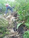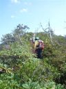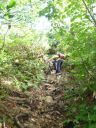 | TIさん、YSさんたちが前回藪こぎで登頂を狙った『荒海山』。 今回は一般ルートからの山行に是非にとお願いしました。 北朝霞から電車を乗り継いで4時間。電車の旅もいいものです。 登山口から出発。秋山にはまだ間があり、アスナロやブナが堂々と茂り、宝石のような赤い実がついたナナカマドがかわいい。 と、ロープが垂れ下がったガラガラの石の急坂。ロッククライミングでしょうか? 何度か出てきて緊張します。木の根が多い。3回転びました… なんとか頂上に跳びだし、三角点めざして藪こぎです。(これは藪こぎではなく、藪っぽい道とIさん)初めての藪こぎは子どものころを思い出し、おもしろさ半分、怖さ半分。 『荒海山』から見る遥かかなたまでの深い山々。ふところの深さとやさしさ、雄大さを感じました。渡る風は涼しく、いつまでもここにいたいと思いました。 (フクシマ頑張れ!!) 先輩のIさん、Sさんには大変お世話になり、山々の楽しいお話も聞けて自分も行った気になり、なんとか登頂できた『荒海山』は渋くて、素晴らしい山でした! |