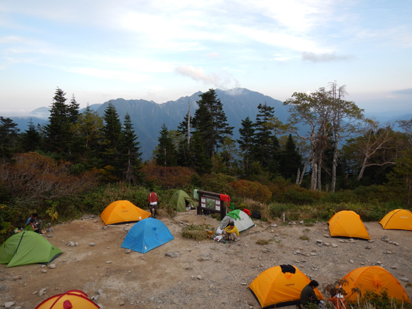 山荘前のテント