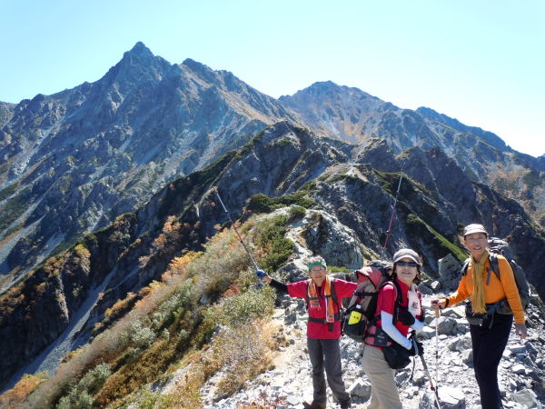ヤッタ〜! 素晴らしい景観です。槍まで続く尾根がクッキリ