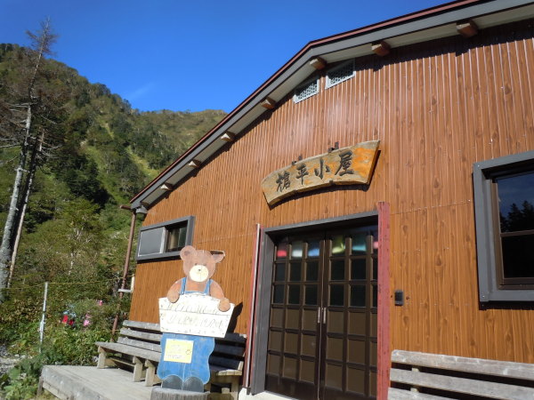 クマさんのお出迎えの槍平小屋に到着