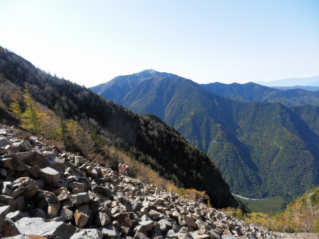 ガレ場中程と仙丈ヶ岳