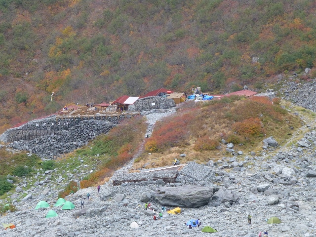 涸沢小屋より涸沢ヒュッテを見る