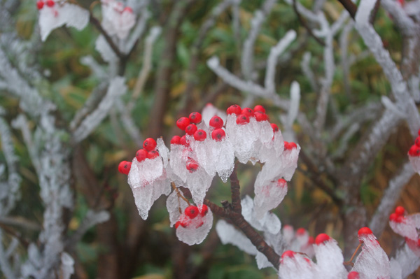 一瞬にしてガラスのエビの尻尾を着ているナナカマド