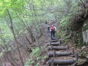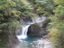 | 【コメント】 リハビリ山行と紅葉を期待して、滝と奇岩で有名な西沢渓谷を計画しました。4人とも西沢渓谷は 初めてで、MIさんのマイカーで花園ICからR140号線に入り、雁坂トンネル(私は初めて)をくぐり ループ橋を降りると直ぐに西沢渓谷入口の駐車場でした。 笛吹川に沿って一周約10`の行程をスタート。甲武信ケ岳登山道入口を右に見て行くと 荒れ果てた休業中の西沢山荘が見えた。田部重治文学碑の横を通り二俣吊橋を渡ると山道と なった。早かったのか残念ながら山葡萄以外は紅葉していなかった。一つひとつ変化に富んだ滝は、 水量が多く素晴しい紺碧色で見応えがあった。滝を見ながら早めに昼食としました。 もう一つの有名な奇岩のフグ岩や人面洞やカエル岩などは、立看板がないと分らない。 「竜神の滝」 の滝壺は、本当に紺碧色で美しかった。方杖橋を渡ると日本名瀑100選の 「七ツ釜五段の滝」が見え 初めた。この滝は予想以上に大きくて水量が多く迫力があった。 不動滝を過ぎると塩山駅までの36`を木材搬出として昭和8年〜43年まで活躍した 「三塩軌道」 のトロッコのレールが至る所に残っていた。こんな深い渓谷にトロッコが走っていたとは信じられなかった。 ネトリ橋を渡り駐車場に予定時間よりあまり遅れずに到着出来ました。帰路の途中で荒川の上流沿い にある大滝温泉で体を癒しました。 今回は、紅葉は見られませんでしたが、素晴しい滝には大満足しました。錦秋の時に再度訪ねて みたい渓谷でした。 (記:IS) |