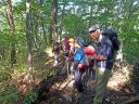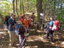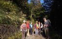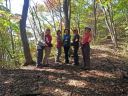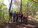 | 【山行期日】 2013年10月27日(日) 【メンバー】 CL:T.O、SL:T.K、M.K、S.O、S.W、H.S、S.O、T.Y 【コースタイム】 北朝霞発7:16―高尾発8:03―鳥沢着8:35―鳥沢発9:00 (バス乗車) 梨の木平着9:16 出発9:22―山ノ神9:55~10:00―大久保のコル10:42―扇山山頂10:57~11:05― 宮谷分岐12:19―百蔵山山頂13:12~14:05―車道に出る15:30―猿橋駅着15:55 【コメント】 10月27日(日)の会山行、「赤雪山・仙人ヶ岳」が台風の影響で中止になった。 しょんぼりしているところへ、Oリーダーから個人山行のメールが入った。 行先は、「扇山」。 7年ぶりのこの山へ、ニコニコ顔で北朝霞駅へ向かった。 歩き始めると、山道には、水がずいぶん流れていた。扇山がこの様な状態なので、 沢のある仙人ヶ岳は、やっぱり無理だった。と、思った。 紅葉が始まった静かな樹林の中、楽しいおしゃべりをしながら歩くと、あっとゆう間に扇山に到着。 晴天のもと、富士山がよく見えた。山頂の看板の前で記念撮影をして、百蔵山に向かった。 結構、アップダウンを繰り返し、百蔵山山頂で、また富士山を望めた時は嬉しかった。 ここで昼食。富士山が見える所でゆっくりと、昼食を楽しむのは、最高の贅沢。 秋晴れのもと、身体も心も喜んだ山行が出来た事に、感謝した一日であった。 記:T/Y |